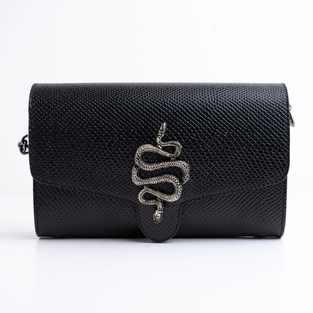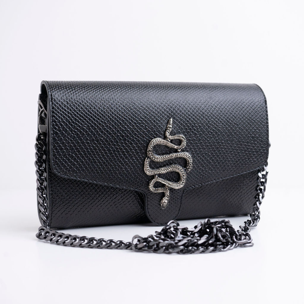 Elegant and polished Clutch created with recycled plastic PET materials. Sturdy and durable, Sabina Clutches are equipped with a long crossbody chain and a convenient dust bag.